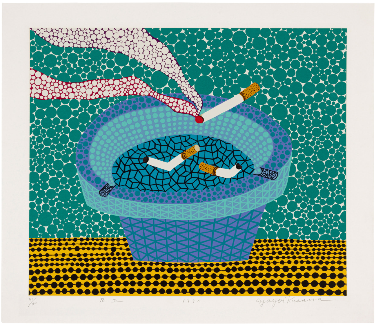 Signed, titled in Japanese, dated and numbered ‘Yayoi Kusama 1992 75⁄120’ (lower edge)