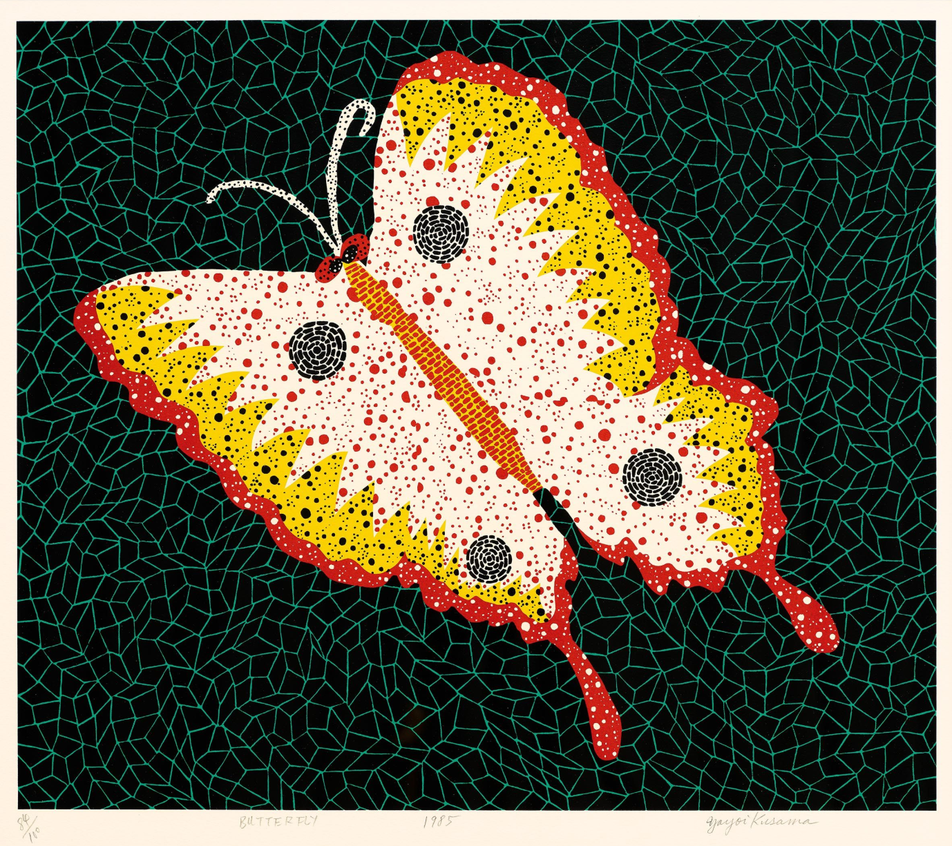signed, titled and numbered ’61/100 “BUTTERFLY” 1985 yayoi Kusama’ along the bottom edge