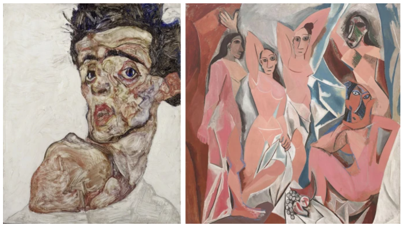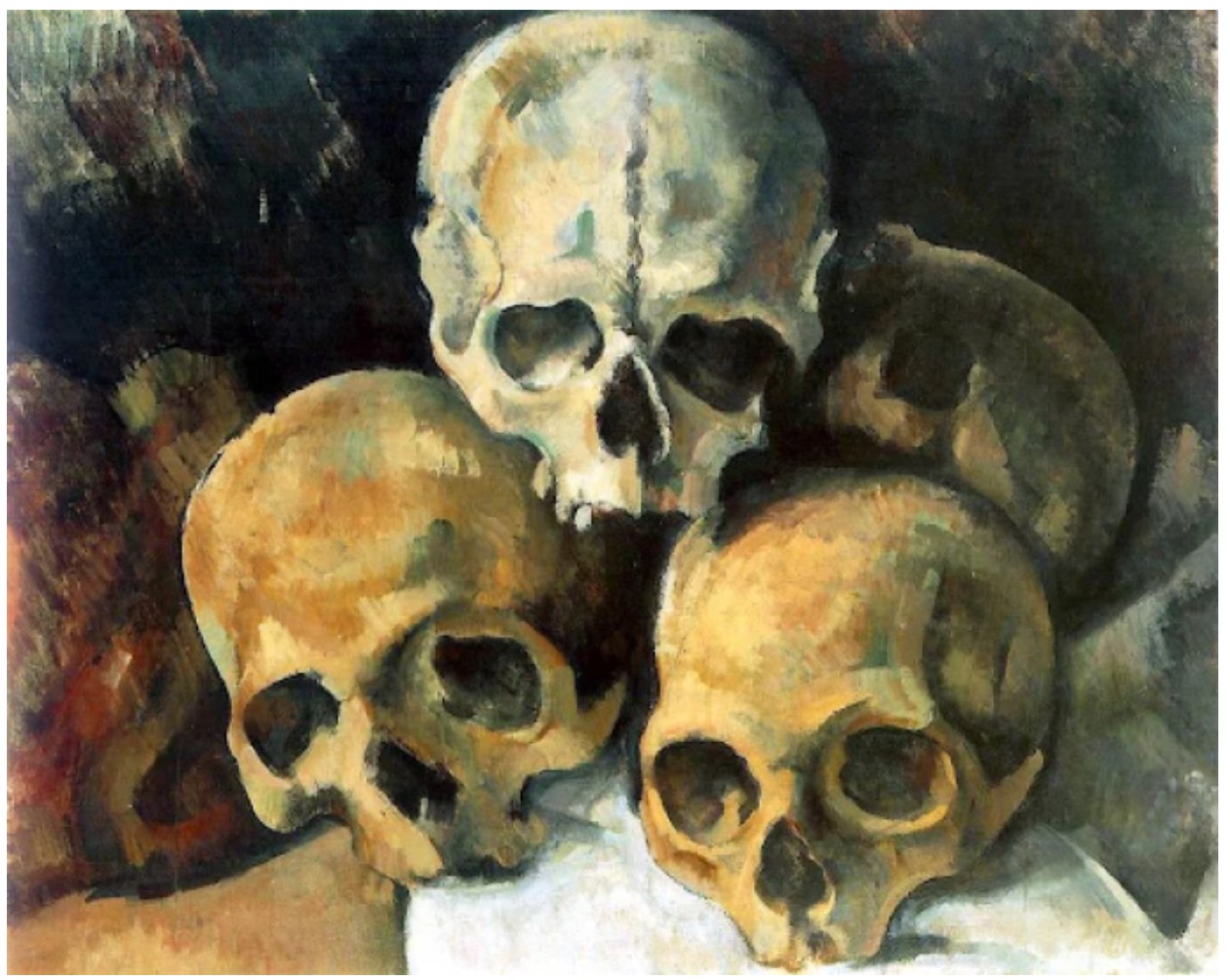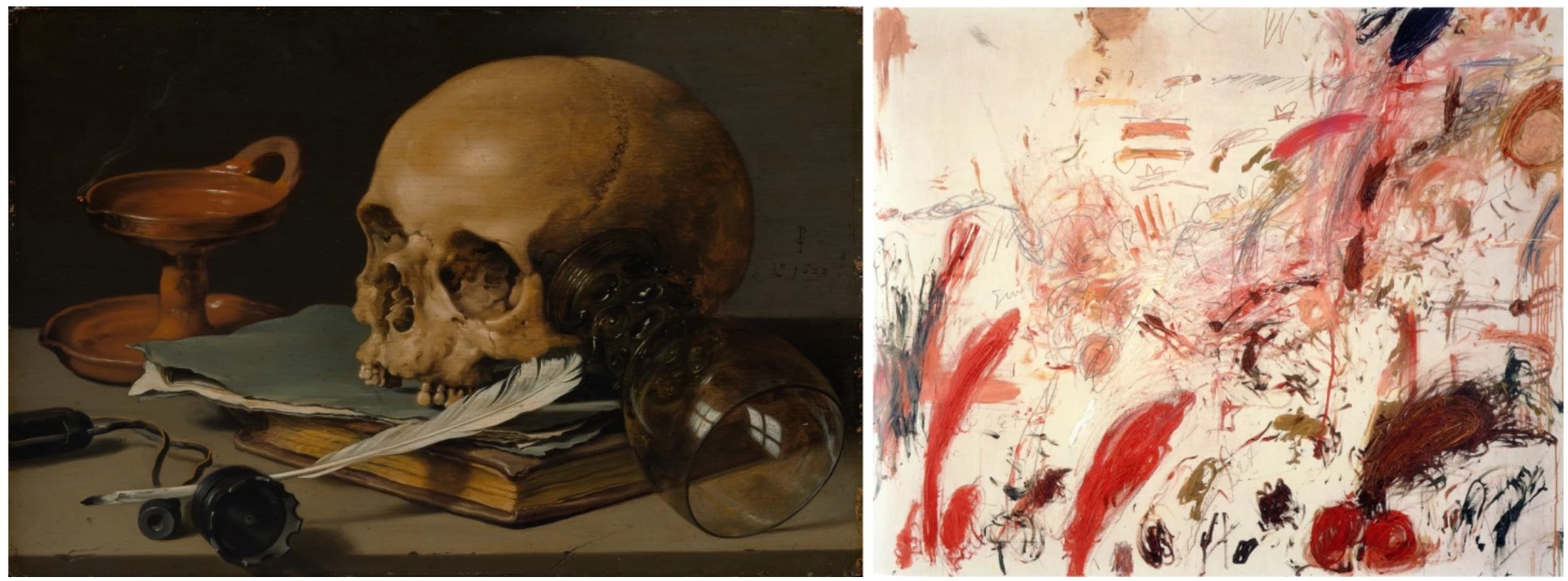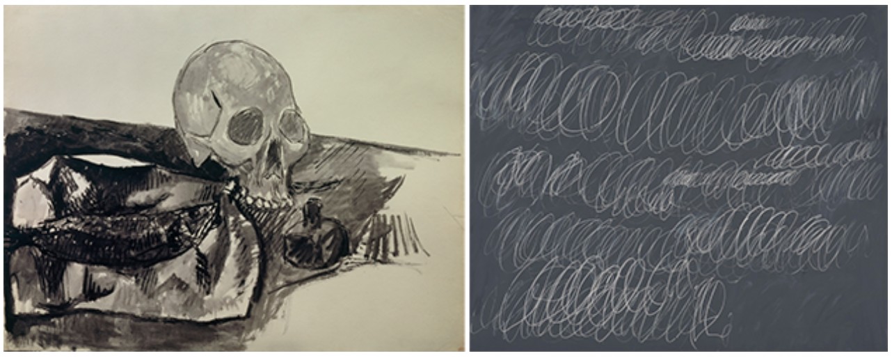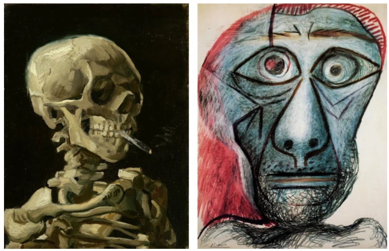 [Left] Pablo Picasso, Still life: fish, skull and inkwell, Paris, spring-summer 1908. Musée national Picasso, Paris. Artwork: © 2025 Estate of Pablo Picasso / Artists Rights Society (ARS), New York