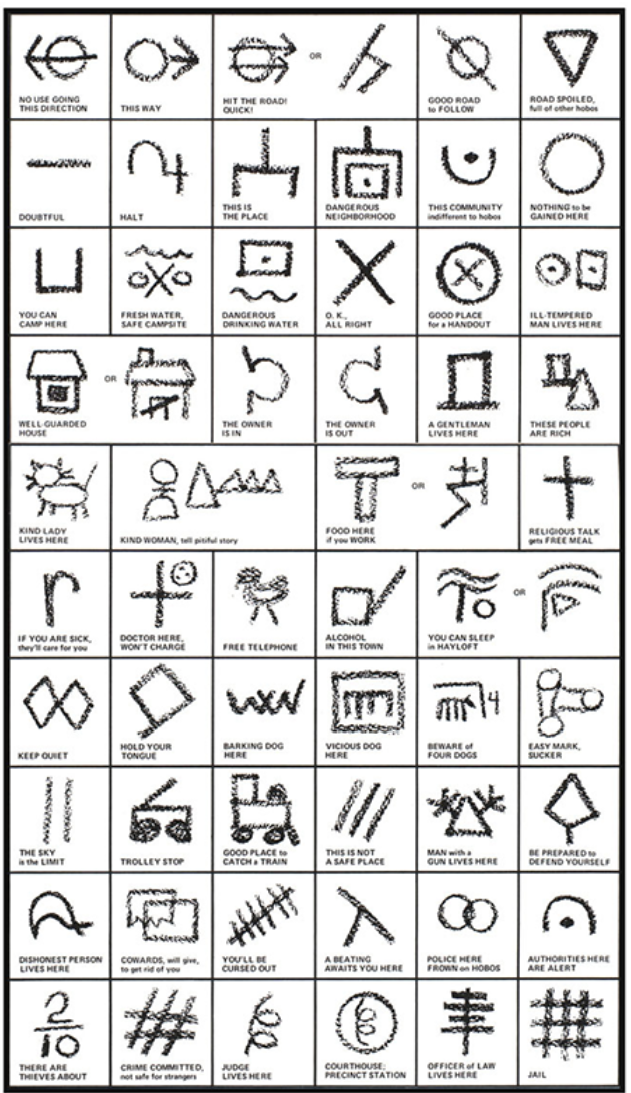 ‘Hobo Signs’, from Henry Dreyfuss, Symbol Sourcebook: An Authoritative Guide to International Graphic Symbols, 1972