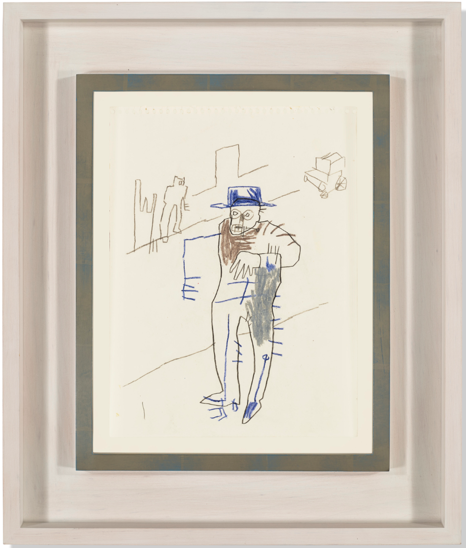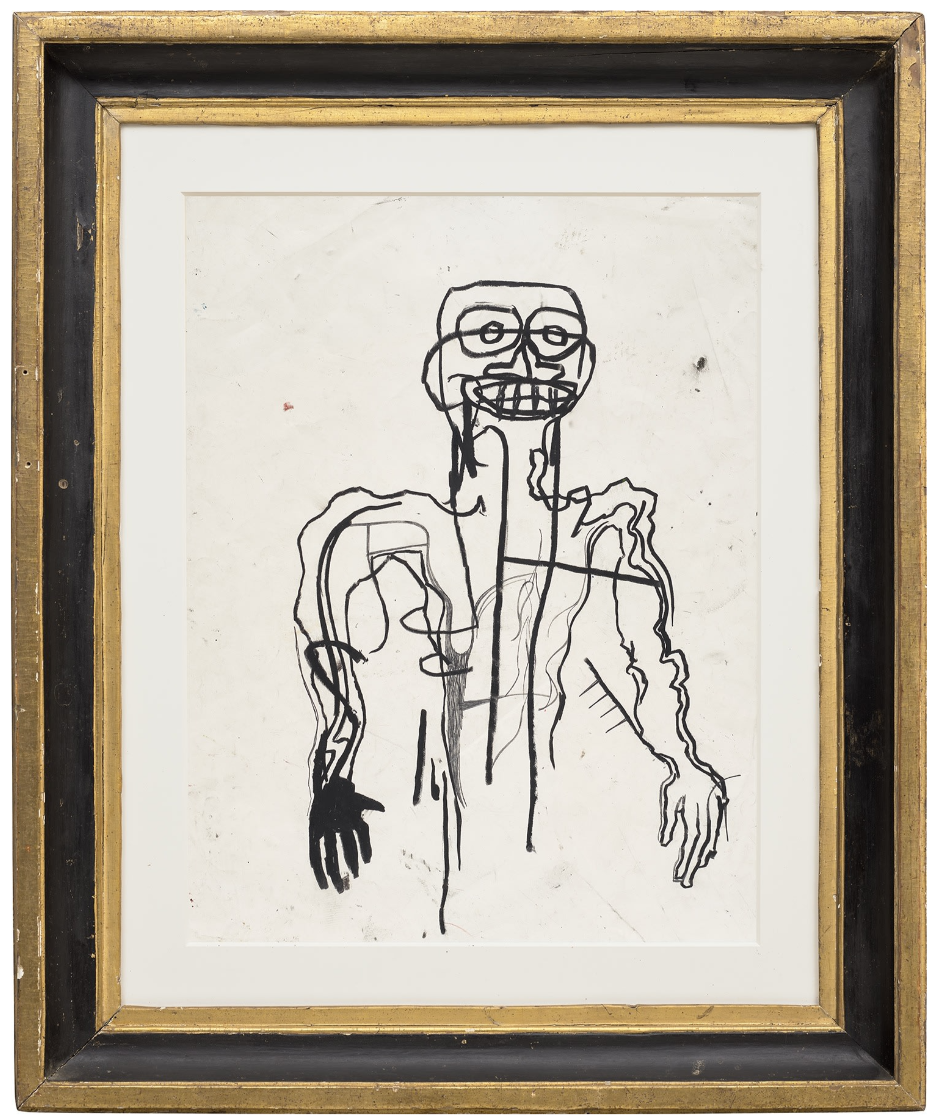 A succinct presentation of Jean-Michel Basquiat’s remarkable ability to distil complex narrative elements into deceptively simple forms, Untitled captures the human condition with startling precision. Developing out the enigmatic symbols and simplified forms that Basquiat created as a street artist, Basquiat’s figure belies a complex engagement with both myth and the art historical canon, as well as with the human condition itself. Formerly in the esteemed collection of Lio Malca, Untitled has only been in two private collections since and comes to market with impeccable provenance. Included in the 2019 exhibition Jean-Michel Basquiat: Made in Japan at the Mori Arts Centre Gallery in Tokyo, the first full-scale exhibition of the artist’s work in the region, Untitled offers a uniquely important insight into Basquiat’s drawing practice, and his legacy today.