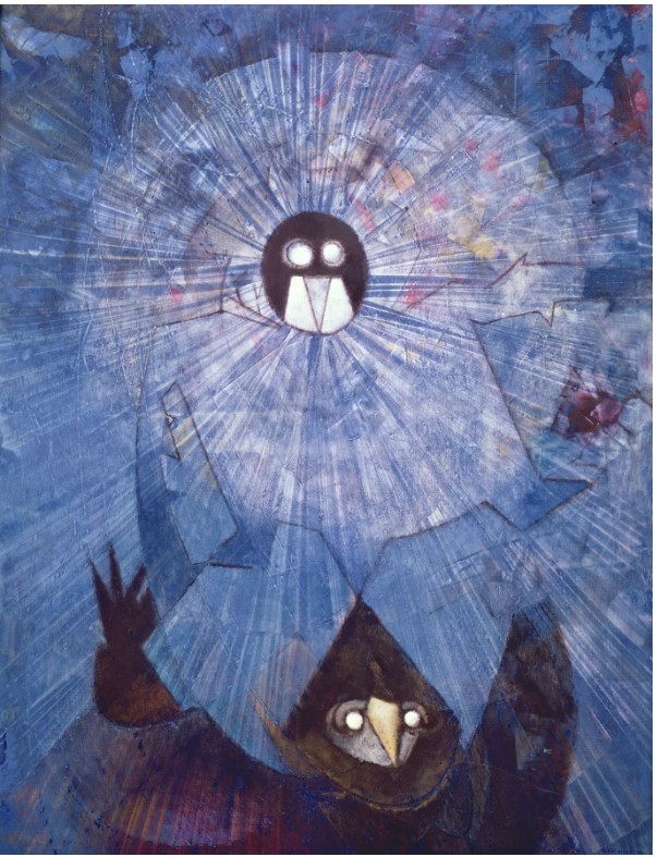 Painted the year he visited the city, Hong Kong documents Jean Michel-Basquiat’s perception of the journey in April 1985. During that time, the rising star of the contemporary art world travelled with Michael Chow, a socialite in art and the owner of the upmarket restaurant chain in multiple cities. Centering the work are two gnarling heads depicted in the artist’s iconic anatomical style that resemble lion dance, a form of local traditional dance in lion costume to bring good luck and fortune. With the copyright symbol on King Kong, this not only labeled the figurine exclusive to Basquiat, but perhaps also signified the work as his memory and experience in the exotic city that no one else could “copy”.