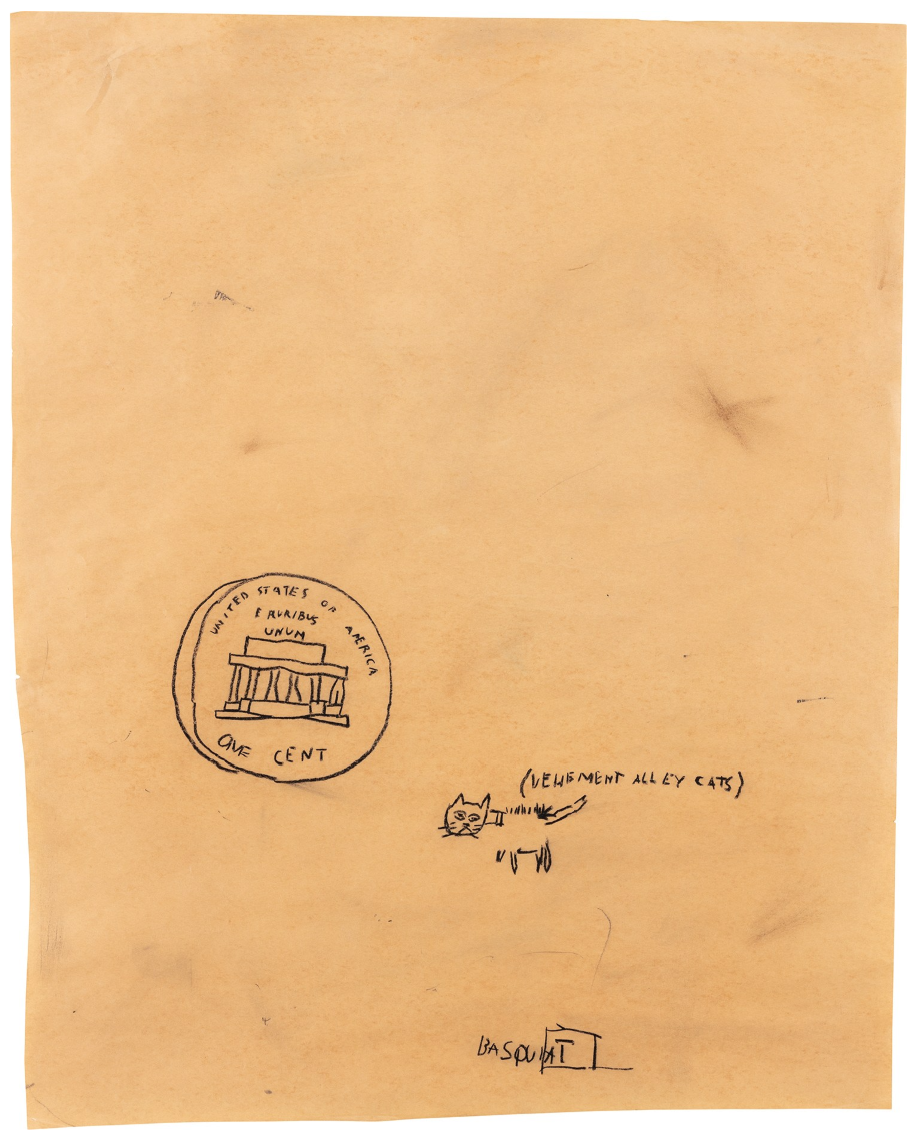 The desire to communicate through his art while resisting categorization is powerfully evident in Untitled, where the artist’s unbounded curiosity and exceptional storytelling unfold across the page. An exquisite example of Basquiat’s signature Neo-Expressionist style and his commitment to reimagining the myths of past and present, Untitled—with its scrawled anatomical renderings and lyrical text—serves as both a mirror of his career to that point and a portrait of his imaginative, restless mind.