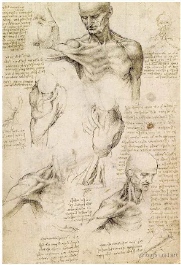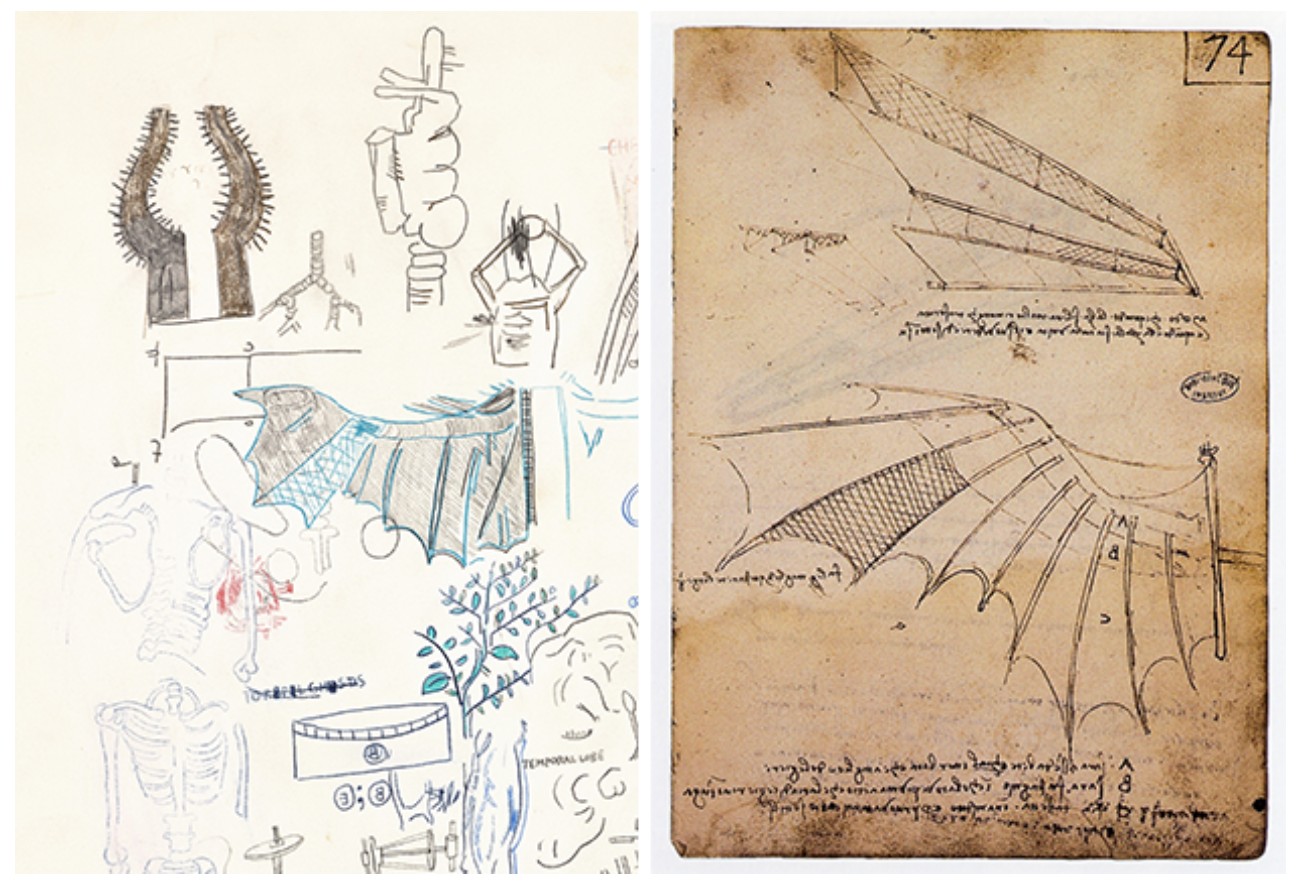 [Right] Study of wing articulation. From da Vinci’s notebooks, circa 1487 – 1490. Image: Gravure Francaise / Alamy Stock Photo