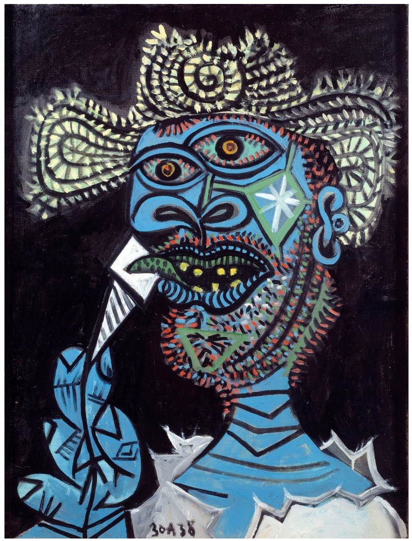 Left: Pablo Picasso, Tête (Autoportrait), 1972. Private collection. Artwork: Artwork: © 2026 Succession Picasso/DACS, London. Digital image: © 2026 Album/Scala, Florence.