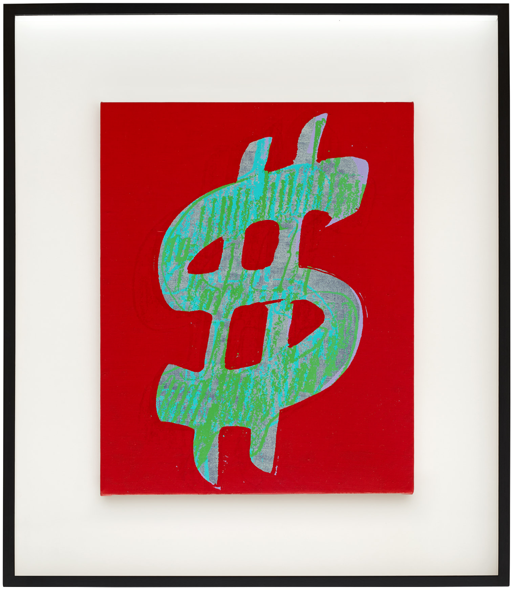 A signifier of something precious and valuable, Fragile serves as a prime example of Warhol’s playful appropriation of quotidian imagery. With his relentlessly repetitive compositions, the artist simultaneously intensified and played down the intended impact and meaning of his images whether celebrity portraits, dollar bills, or shipping labels. For example, in other works from the Fragile series, he recurrently displayed the label across the canvas. His intention was to limit his artistic intervention by abbreviating the creative act to a simple choice of source image and color. In Fragile we see Warhol pioneering and perfecting his craft; an important and transitional work that paved the way for the artist’s full immersion into an almost entirely mechanized mode of painterly production.
