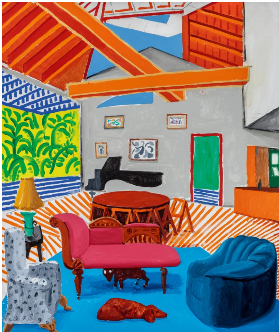 Using unorthodox and novel mediums to communicate his vision from the onset of his career, The Arrival of Spring in Woldgate, East Yorkshire in 2011 – 2 June 2011 demonstrates Hockney’s perpetual enthusiasm in approaching new technologies of image-making. The artist has spoken powerfully about the weekly trips taken with his father to the cinema, where ‘The screen, as if by magic, was opening up the wall to you, it showed you another world’. As if catalyzed by film, already in the 1960s Hockney began to use the camera, purchasing a polaroid in 1964 whose images served as references for his paintings.