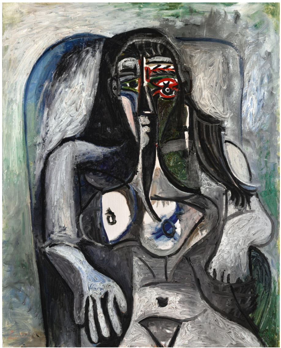 Painted in 1960, when Picasso was seventy-nine, Nu assis belongs to an important group of works from the artist’s so-called ‘late period’. Characterized by a raw energy, gestural application of paint and recourse to archetypal subject matter, these paintings have experienced a significant critical reappraisal over the past few decades and are now rightly seen as the final flourish of one of the greatest artists of the twentieth century.