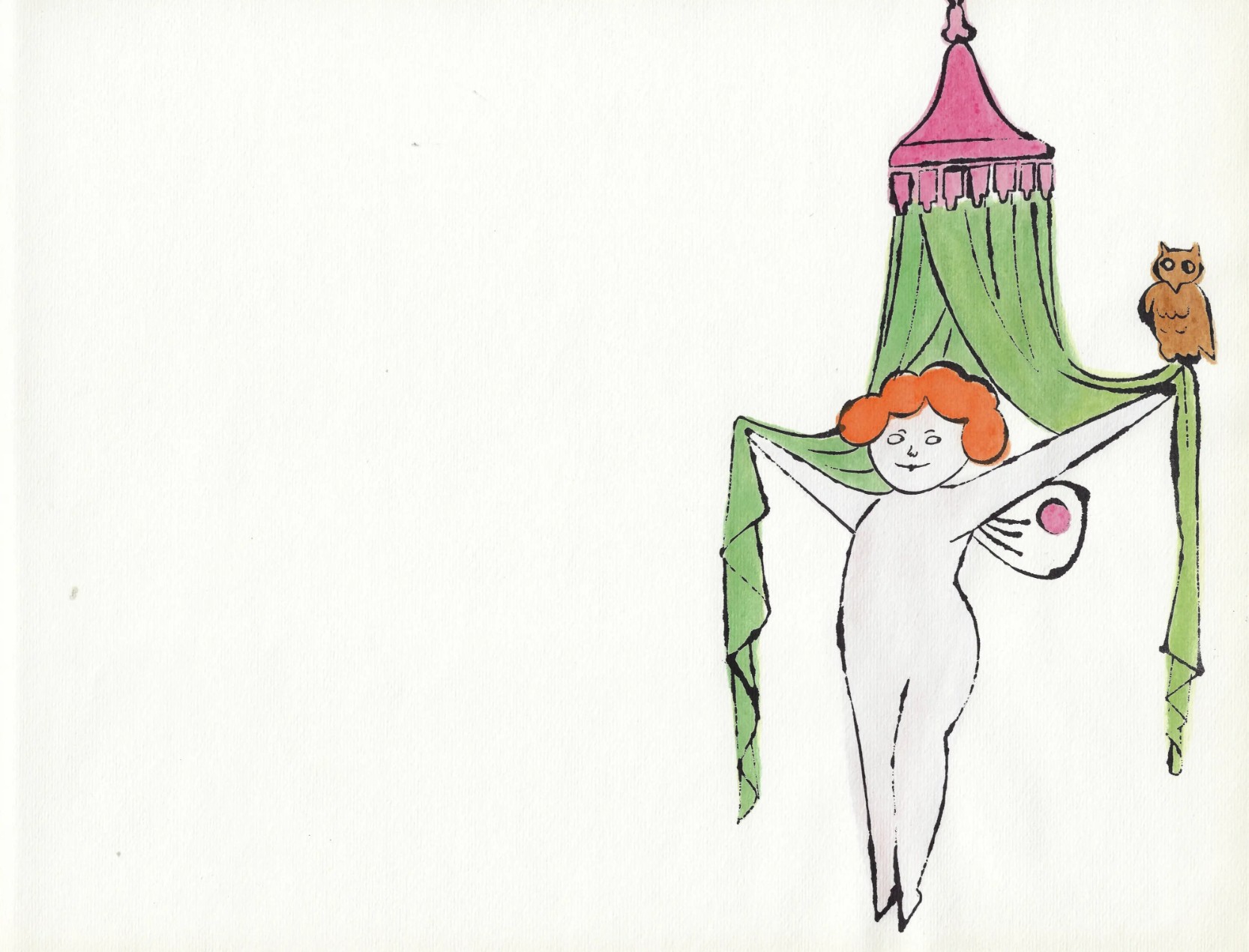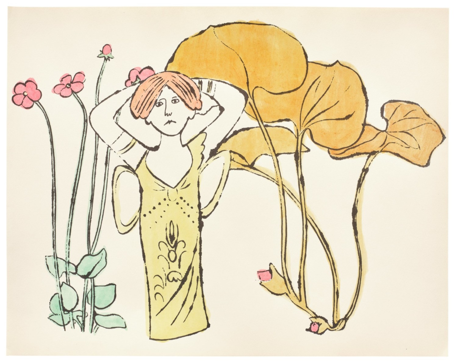 Screenprint hand-colored with Dr. Martin’s aniline watercolor dyes on J.B. Green